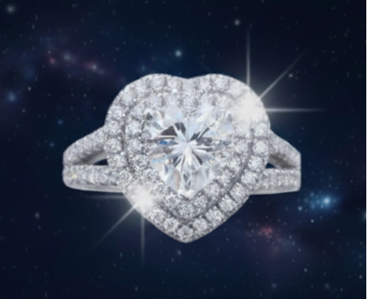 Introducing Timeless Embrace - a breathtaking 1.5-carat moissanite heart ring with a stunning double halo setting. This exquisite piece features a brilliant heart-cut moissanite center stone surrounded by two rows of sparkling accent stones, creating extraordinary depth and brilliance.